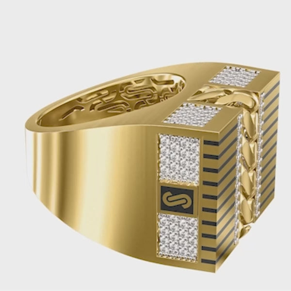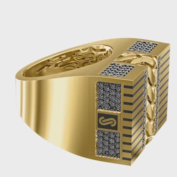 Influenciado por motivos históricos y el equilibrio de líneas geométricas, el anillo Monaco Chain NERO 13 muestra una simetría armoniosa de eslabones de oro amarillo, zirconia cúbica de corte redondo y detalles en esmalte negro.
